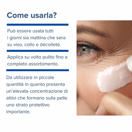 Una crema viso anti-age studiata per soddisfare le esigenze di pelli mature o molto secche che presentano segni di invecchiamento cutaneo e mancanza di elasticità.