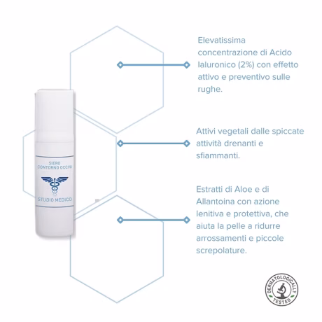 Un siero contorno-occhi a 360° perché contiene sia attivi vegetali dalle spiccate attività drenanti e sfiammanti come caffeina e centella asiatica, che un’elevatissima concentrazione di Acido Ialuronico al 2% in doppio peso molecolare (400kDa-1.700kDa) con effetto sia attivo che preventivo sulle rughe, idratando in profondità e rendendo la pelle più morbida e levigata. È arricchito dagli estratti di Aloe e di Allantoina che svolgono un’efficace azione lenitiva e protettiva, aiutando la pelle a ridurre arrossamenti e piccole screpolature. È formulato con l’utilizzo della Tecnologia Glicerosomiale brevettata che migliora e promuove dalle 3 alle 5 volte l’azione degli attivi per un risultato sicuro ed efficace. Il siero è formulato nel rispetto della pelle, secondo la filosofia dell’essenzialità Prigen: solo ingredienti attivi in concentrazioni massimizzate e l’assenza di PEG, EDTA, SILICONI, COLORANTI o PARABENI.