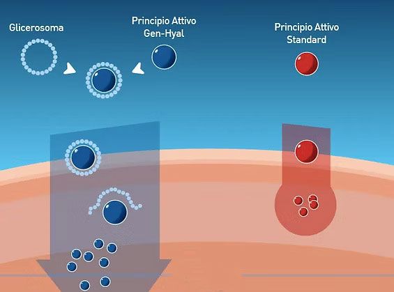 Il ruolo svolto dalle vescicole Glicerosomiali è soprattutto quello di proteggere (ad esempio dalla fotodegradazione dovuta alla luce) e promuovere la permeazione degli agenti attivi fino agli strati cutanei più profondi, dove l’attivo è maggiormente utile e può esplicare meglio la sua attività. Questa azione si affianca all’altro importante ruolo del sistema Glicerosomiale ossia quello di consentire la preparazione di formulazioni topiche, non convenzionali, sottoforma di dispersioni vescicolari in gel idrofili, quindi prive di sostanze di natura grassa e di eccipienti come tensioattivi e co-emulsionanti tipicamente presenti nelle emulsioni convenzionali.